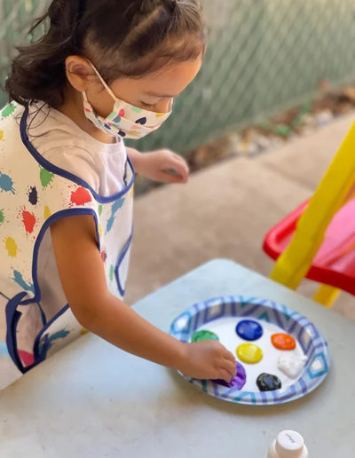 Our air-conditioned classroom spans 860 square feet and is thoughtfully designed with an open floor plan. This layout encourages our students to explore, play, and engage with their surroundings. With ample space to move and interact, children are given the freedom to express their creativity, develop their social skills, and learn through hands-on experiences.